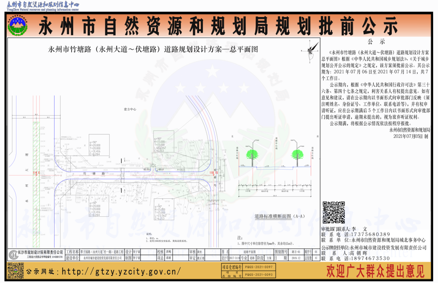 《永州市竹塘路(永州大道~伏塘路)道路规划设计方案总平面图》根据《中华人民共和国城乡规划法》、《关于城乡规划公开公示的规定》之规定,该方案须批前公示。其公示期为:2021年07月06日至2021年07月14日,共7个工作日。