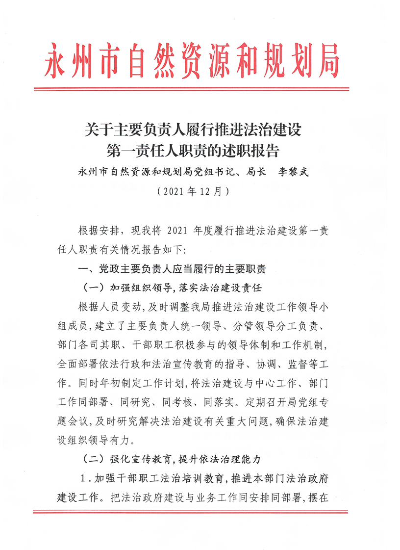 名称: 关于主要负责人履行推进法治建设第一责任人职责的述职报告