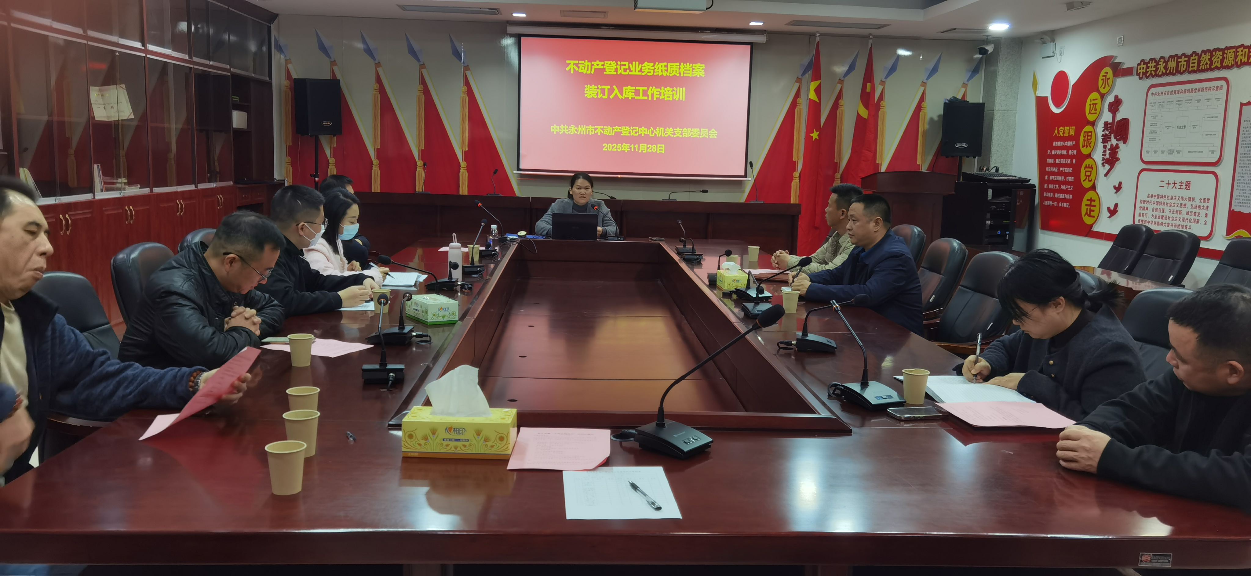 为深入推进党建与业务工作深度融合,充分发挥党支部战斗堡垒作用和党员先锋模范作用,近日,永州市不动产登记中心机关支部组织开展了一场别开生面的主题党日活动——不动产登记档案装订入库工作专题培训,并邀请各分中心档案工作负责同志参加。
