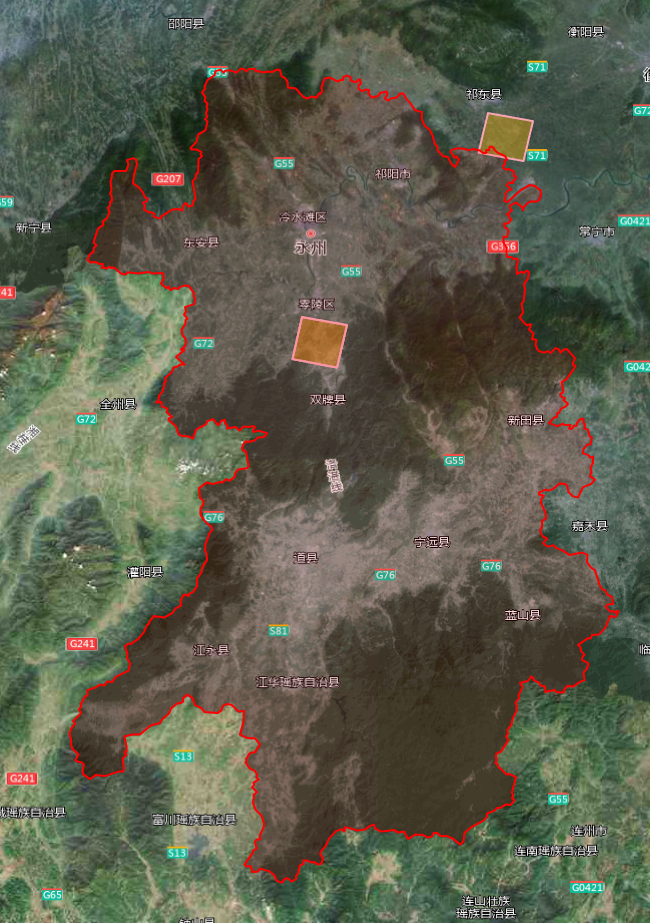2米分辨率影像共4景,覆盖东安县、江华县、蓝山县、新田县部分区域: