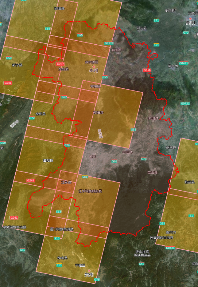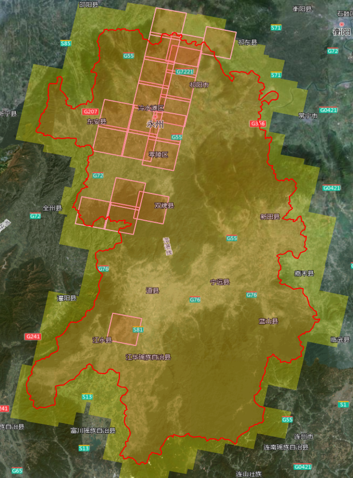 其中,0.5m分辨率光学影像共6景,覆盖东安县等局部区域: