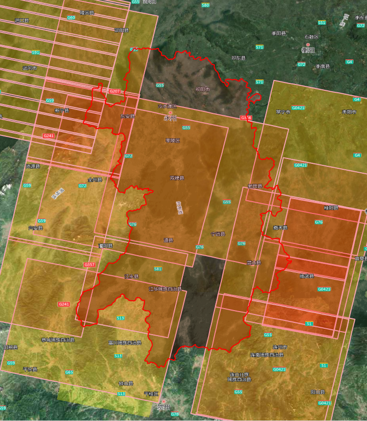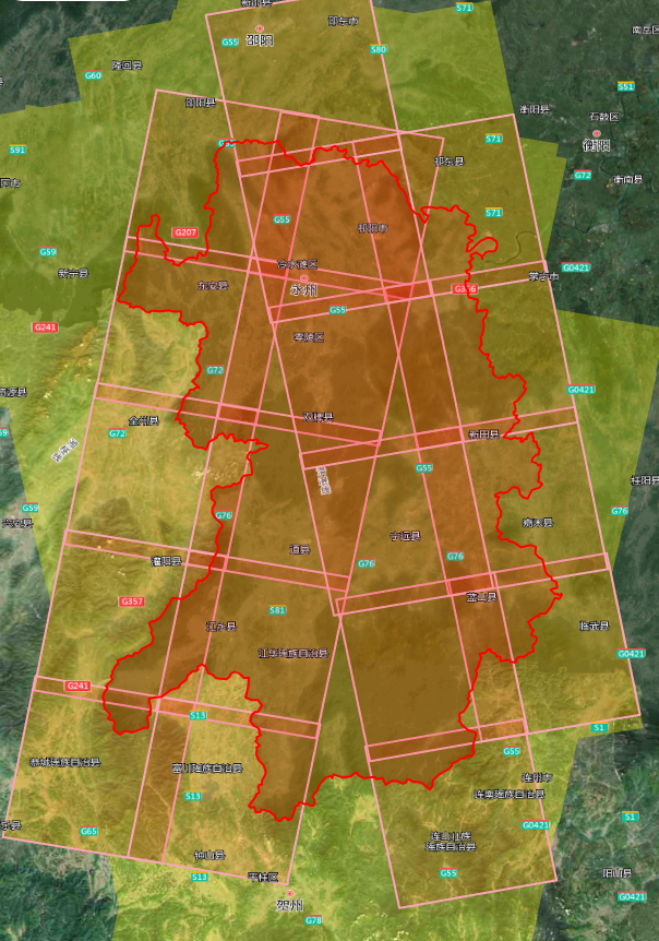 其中,0.5米分辨率影像共78景,覆盖江永县全部区域;道县、江华县、新田县、祁阳市、零陵区、双牌县局部区域: